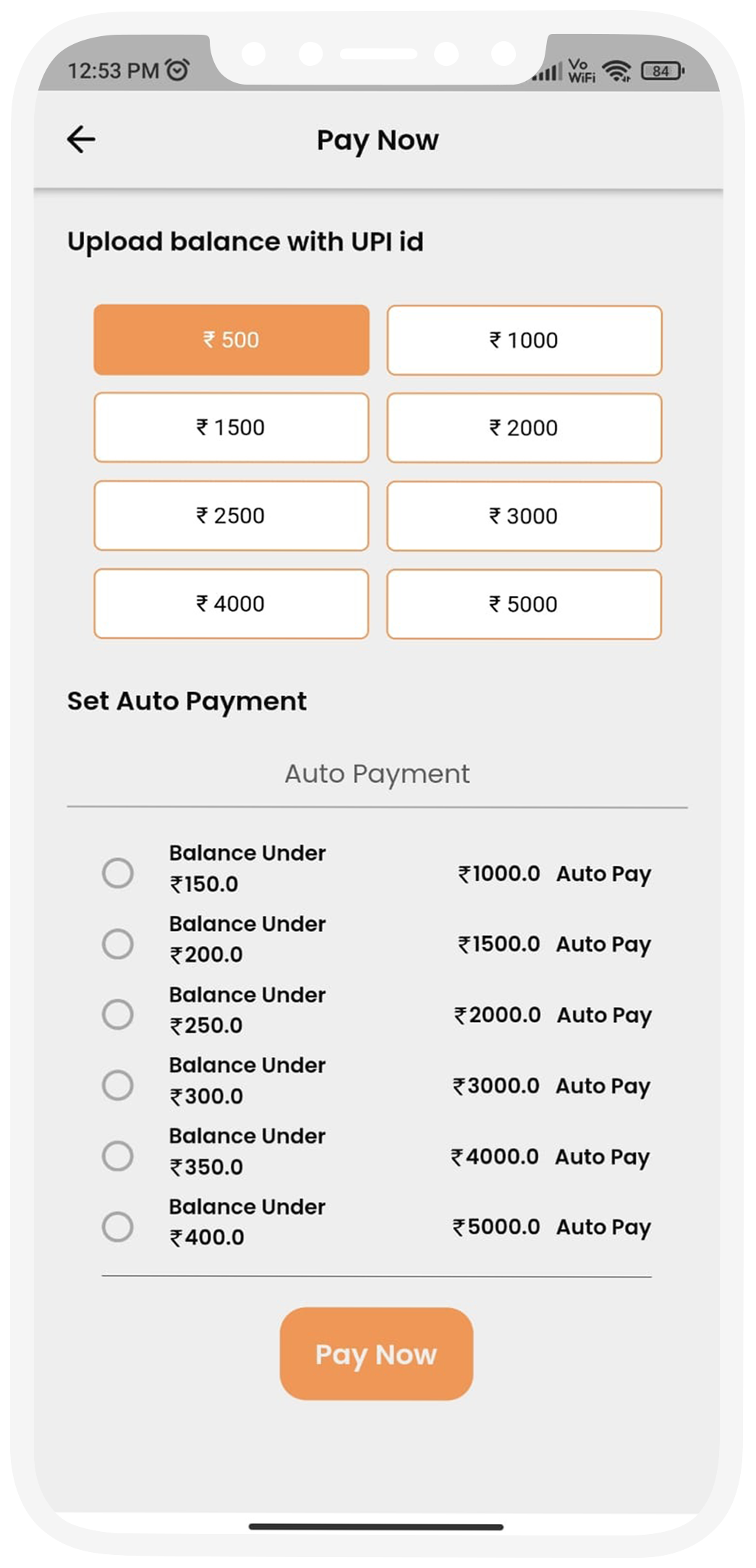 Step 2: Click on second section of payment method titles autopay at you desired autopay option which indicates minimum balance of milkyway wallet on left and payment that you want milkyway to auto deduct from your UPI id linked bank account.